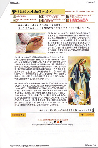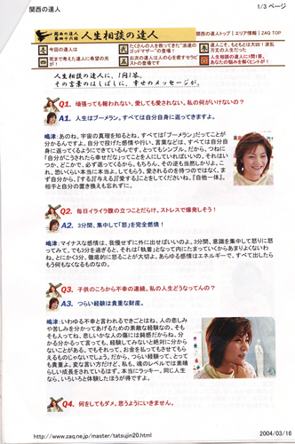 2004年 4月 「ザック人生相談の達人」に掲載されました。
