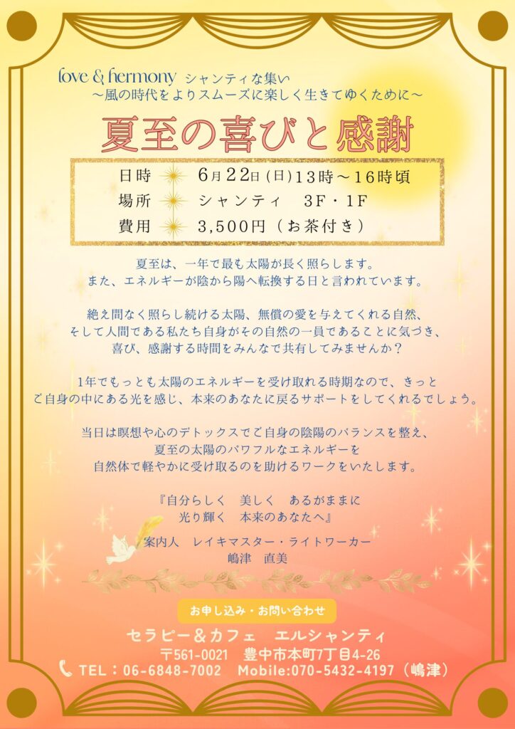 2025年6月22日 『夏至の喜びと感謝』のワークのお知らせ
